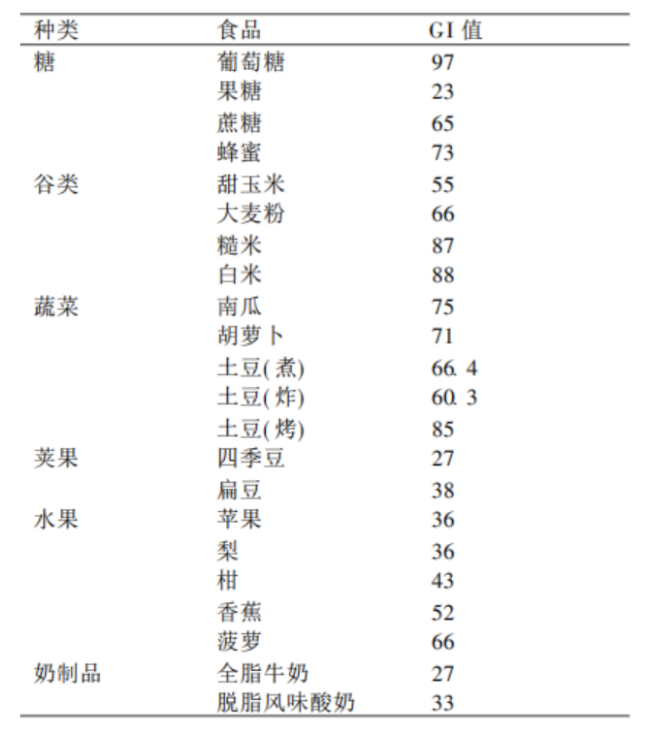 數據來源:趙恕,張舒雅.食物血糖生成指數與其健康意義[J]. 中國微生態學雜志, 2003(04):58+66.