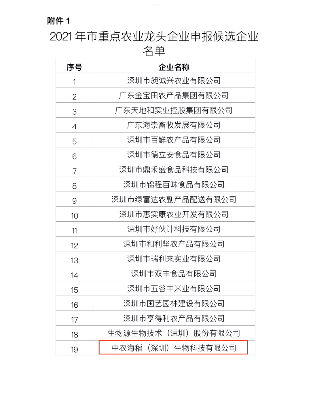 2022年1月30日,深圳市市場(chǎng)監(jiān)督管理局公示了2021年市重點(diǎn)農(nóng)業(yè)龍頭企業(yè)評(píng)審結(jié)果,中農(nóng)海稻公司成功入選。